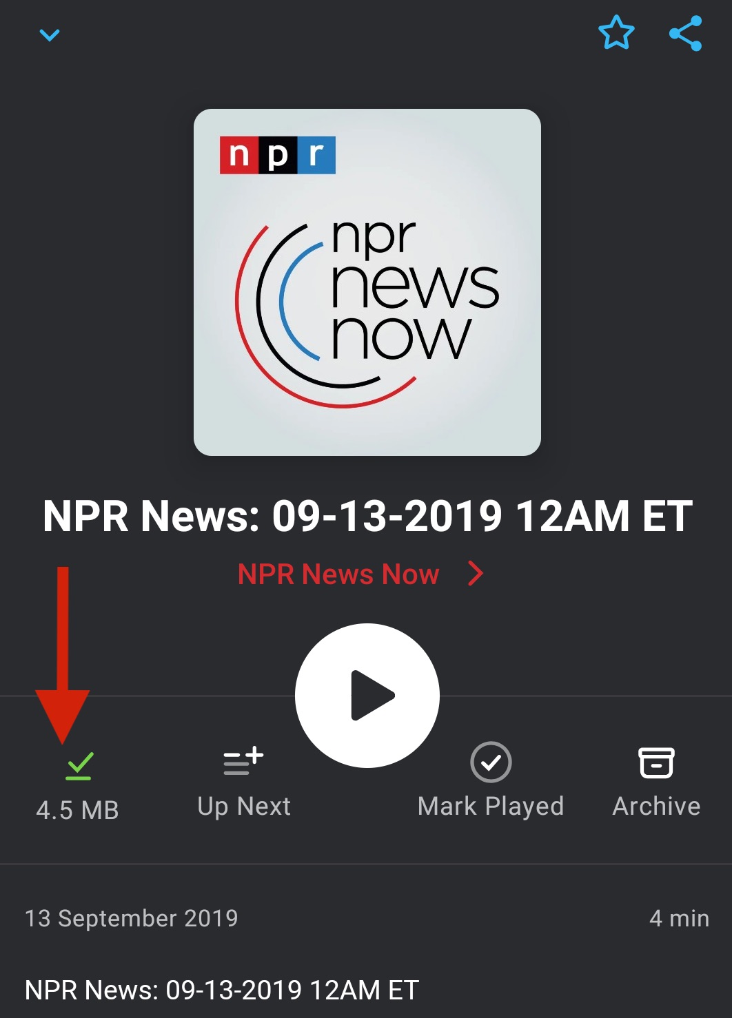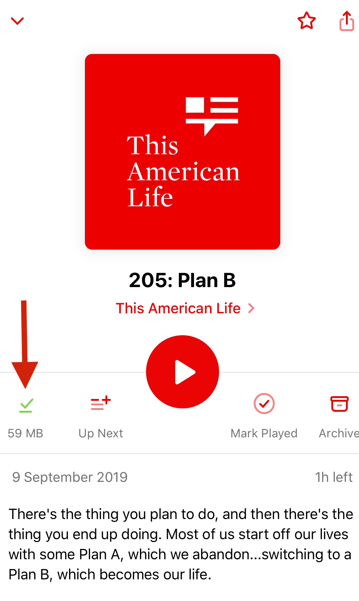 - In the episode card, tap the green tick ✓, which symbolizes that the episode has been downloaded.