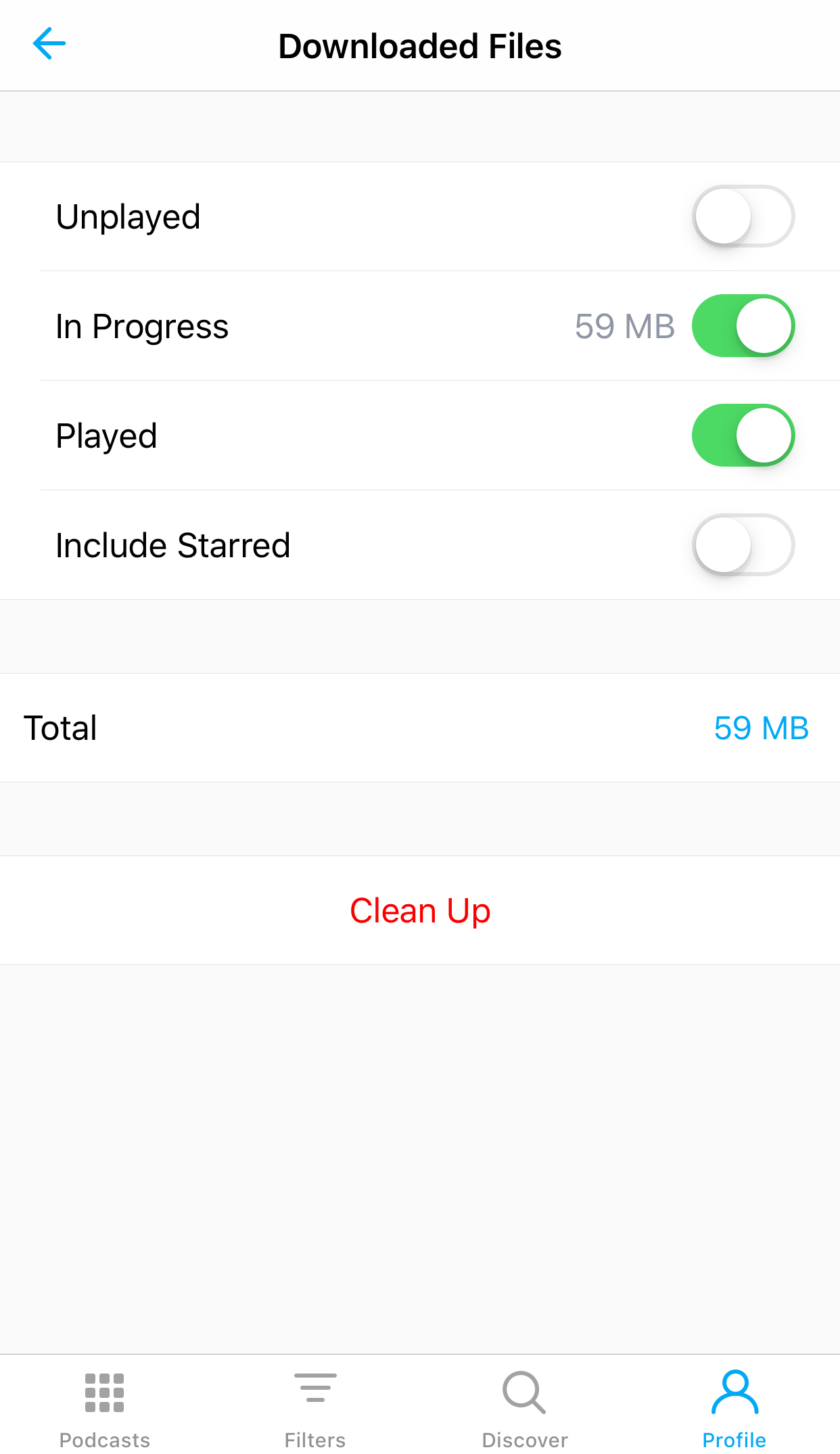 With Auto Archive, episodes will be automatically archived according to your settings. Any downloaded files associated with the episodes will also be deleted in the process.