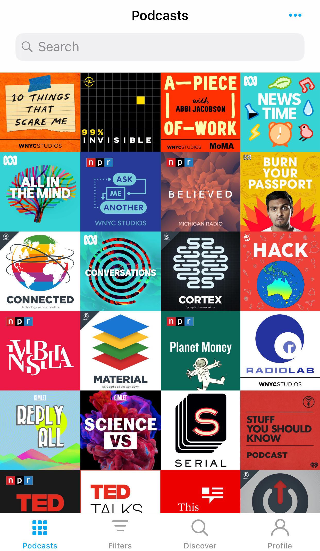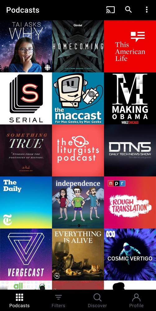The Podcasts tab is the main display of your current podcast follows in the Android and iOS mobile apps.